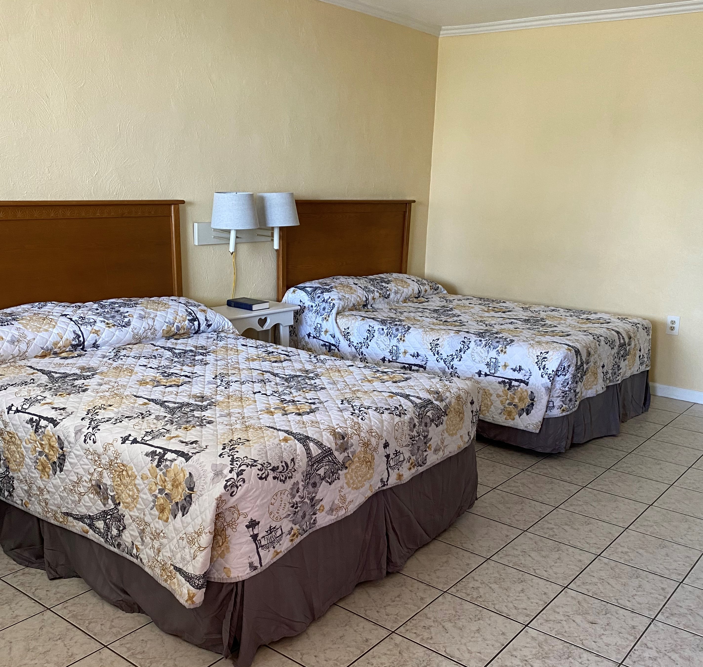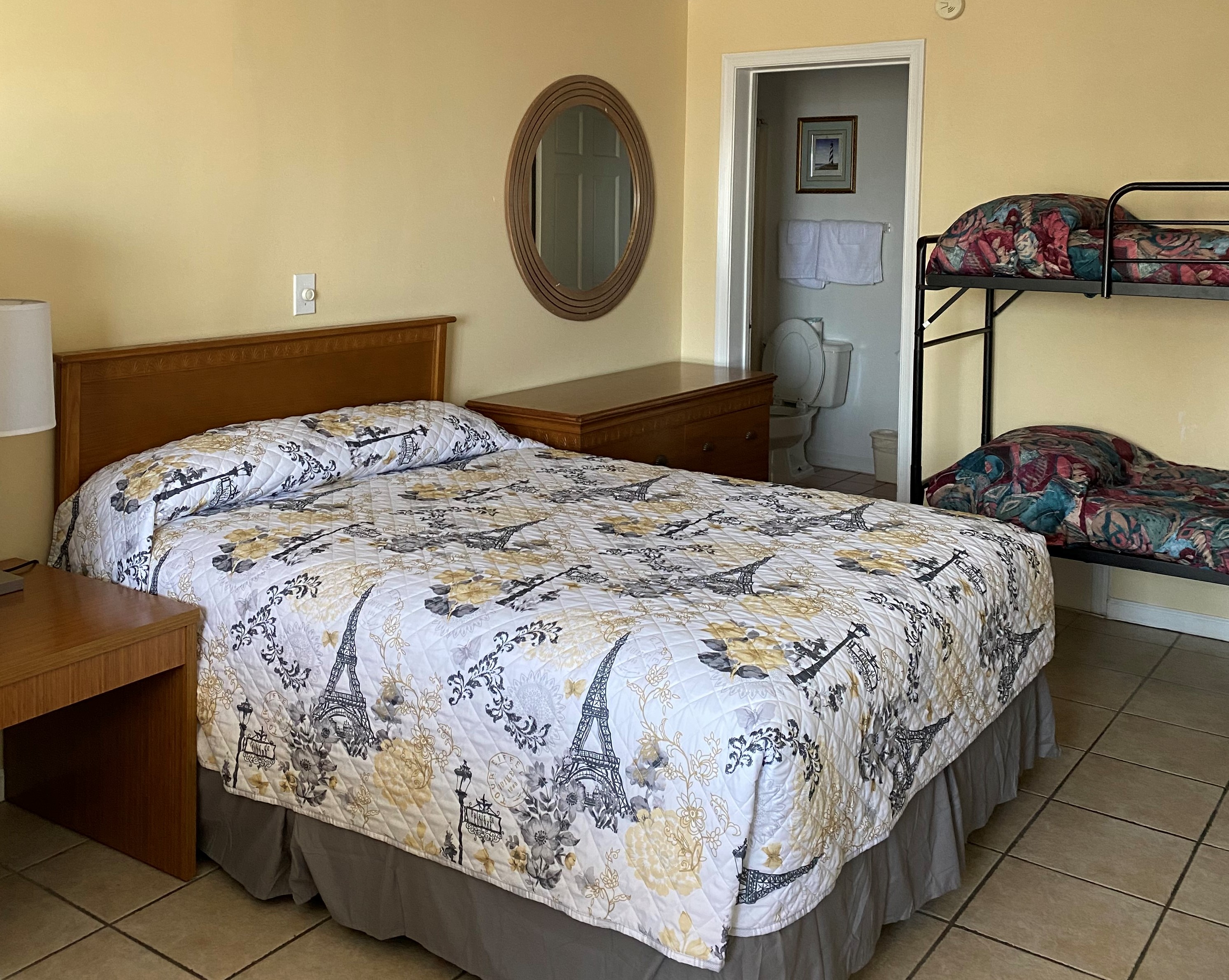 Much larger than our Efficiencies. One double bed, one queen bed,